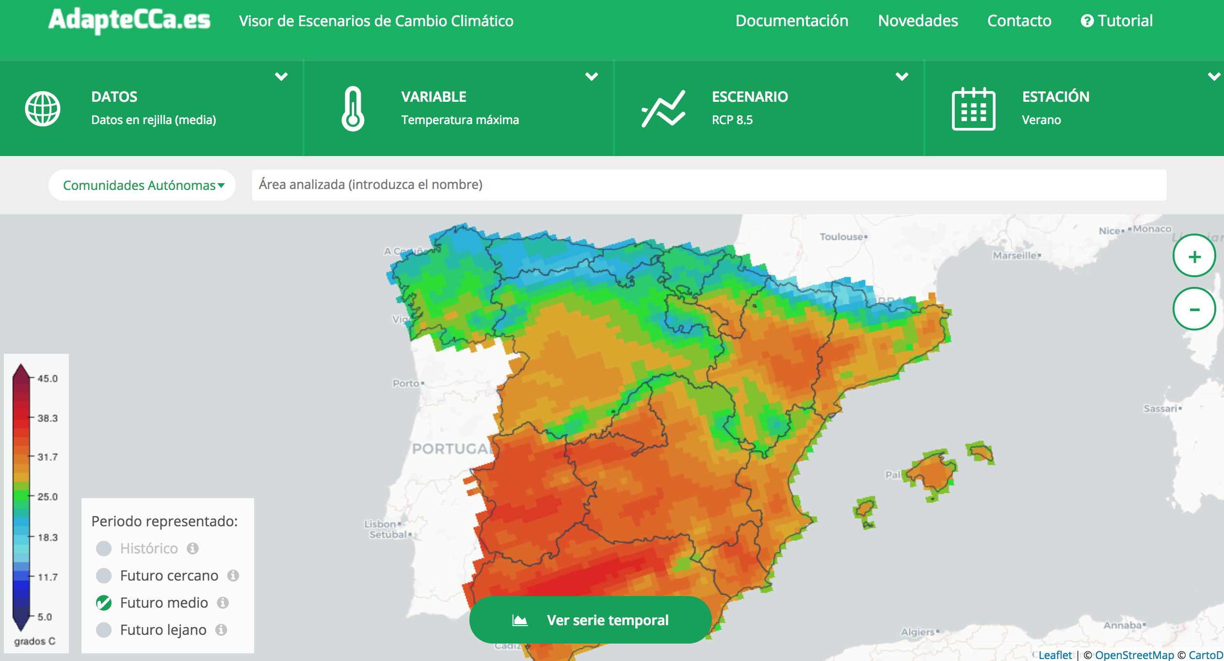 La plataforma AdapteCCa estrena un nuevo visor de escenarios de cambio climático que permite a cualquier usuario consultar proyecciones regionalizadas de cambio climático para España.